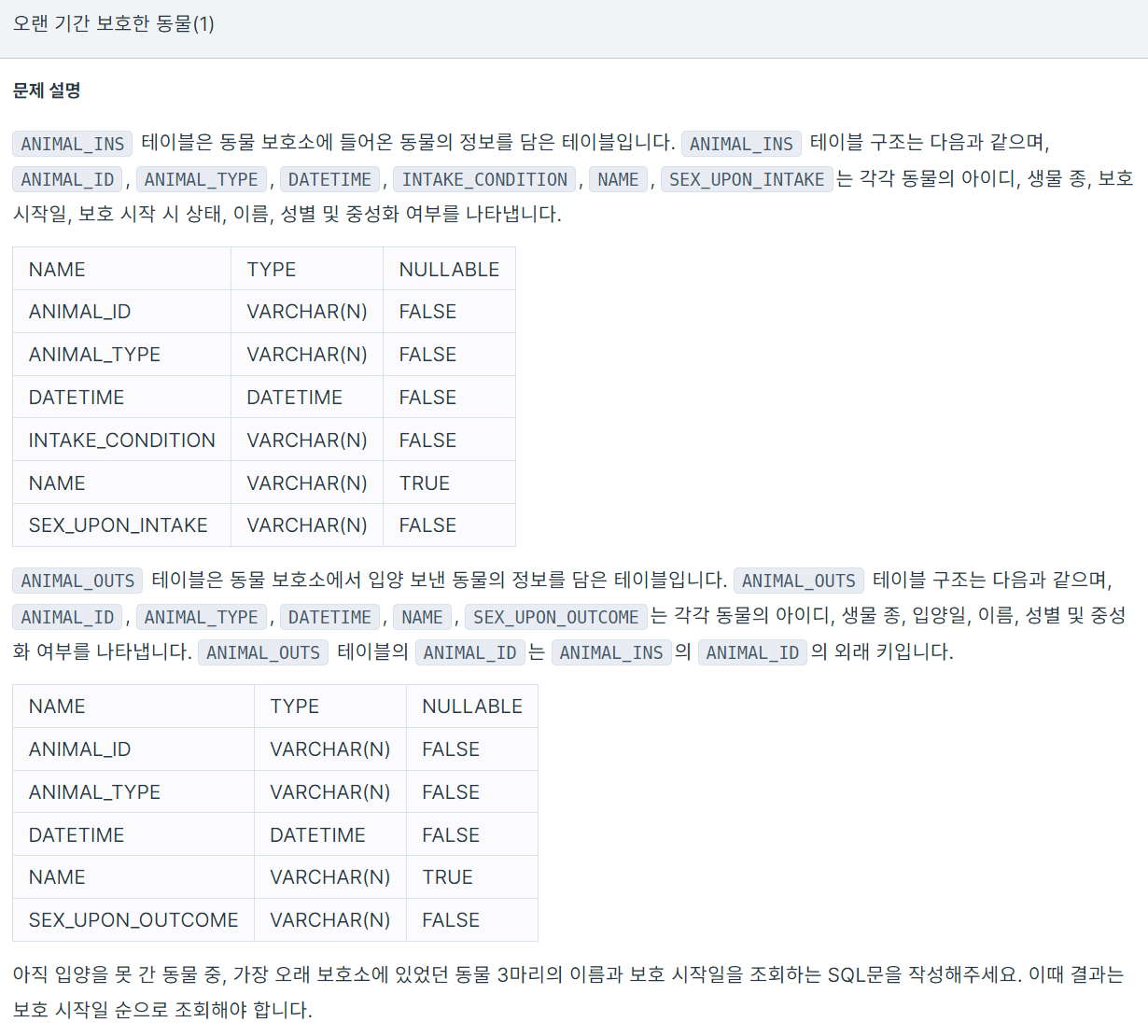 LEFT OUTER JOIN 쓴 이유는 입양을 가지 못한 애들을 NULL로 받을려고