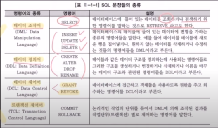 3. Transaction Control Language → Commit, Rollback, Savepoint 등, 작업 단위 별로 제어