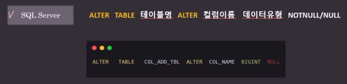 변경할 때도 NOT NULL 지정 안하면 NULL이 가능해짐